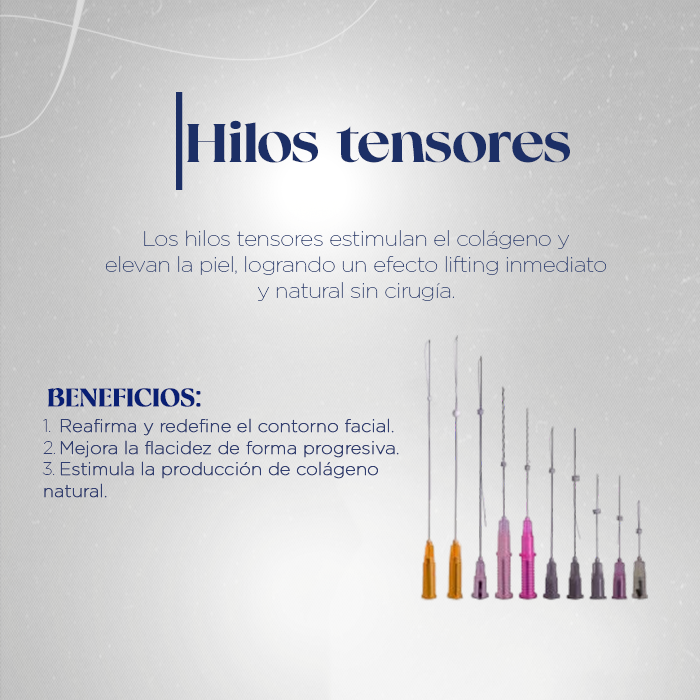 Los hilos tensores estimulan el colágeno y elevan la piel, logrando un efecto lifting inmediato y natural sin cirugía.